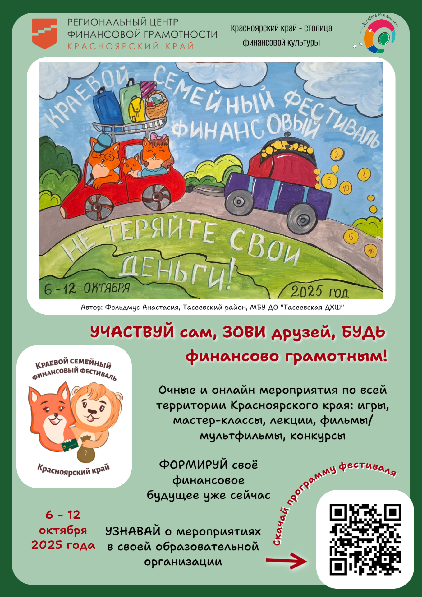 Приглашаем детей и родителей принять участие в VI Краевом семейном финансовом фестивале, который пройдет с 6 по 12 октября 2025 года.